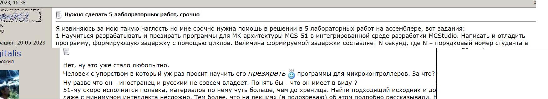 Нарочно не придумаешь... На форуме вроде не приветствуются ссылки на другие форумы, поэтому даю скрином. Из дружественного программерского форума. Как ни пытался я узнать, что этот молодой гений тупая борзота имеет в виду - не снизошёл до ответа, послал чуть ли не матом. Вот оно, будущее... А вы говорите - "Искандеры", "Кинжалы". Их ещё делали нормальные до-ЕГЭшные ребята. Спойлер
