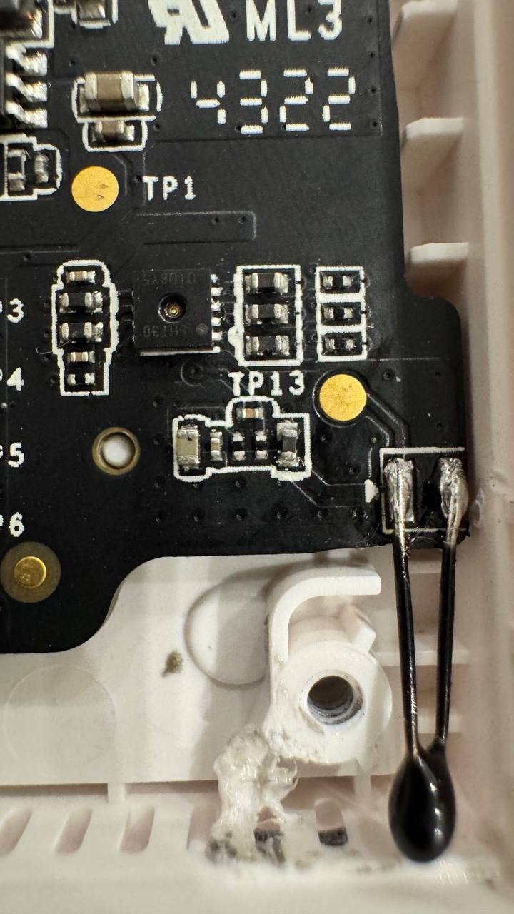 Сверху на фото кусок платы с датчиком SHT30 и какой-то другой цепью с терморезистором. Поскольку внешний терморезистор для работы SHT30 не требуется. Рекомендую таки отнести то устройство (из коего плата, что на фото) к специалистам по данным устройствам.