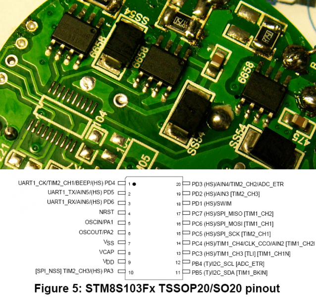 после утилизации подводных декоративных RGB фонариков , остались 10 шт микрос, подозрительно похожих на stm8sxx3.