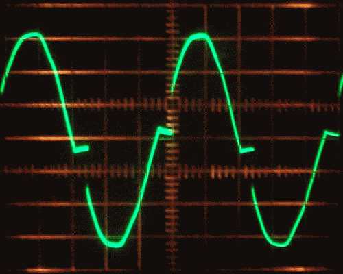 активно-индуктивной нагрузки (например, железно-медного трансформатора на пару сотен ВА) при схожем угле отпирания осциллограмма на входе трансформатора имеет другой вид: