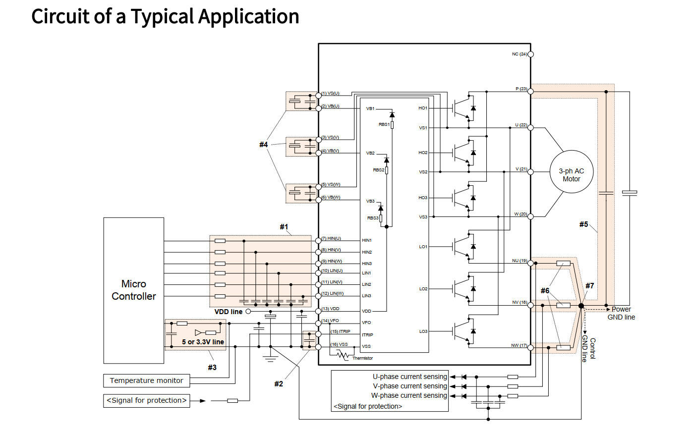 С токовых шунтов снимается сигналы с фаз и усиливаются в низковольных райл ту райл оу и идут на микроконтроллер . Он рулит токовым ограничением и оборотами .