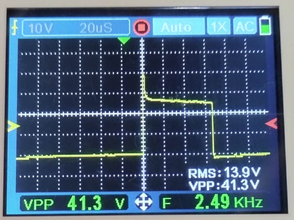 Добрый день, столкнулся с проблемой, аккумуляторный пылесос , китайский, пострадал от воды. Пробило силовой мосфет ( NCE 40H12K) , аккумуляторы разрядило в 0. После замены элементов питания (18650) , элементов в цепи зарядки аккумуляторов и самого мосфета пылесос включается, заряд идёт, режим турбо тоже работает. Но через 5 или 6 включений мосфет снова пробивает. Управление на затворе либо импульсы 5 вольт, либо постоянное напряжение. Сам мосфет нагревается до 40°. Что смущает , при работающем двигателе, (двигатель коллекторный) на осциллограмме импульсы на истоке мосфета по переднему фронту имеют пик, размахом 10в, + сам импульс 30в, а максимальное напряжение мосфета по даташиту всего 40в. На затворе импульсы ровные, без скачков. Если это не наводка на щуп это может быть причиной выхода из строя мосфета?