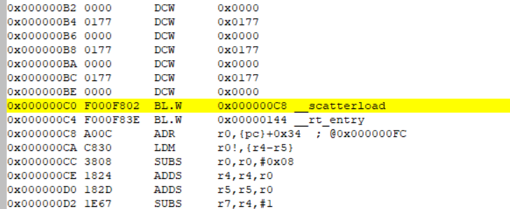 точно также адрес ResetHandler расположен по адресу 0x00000004